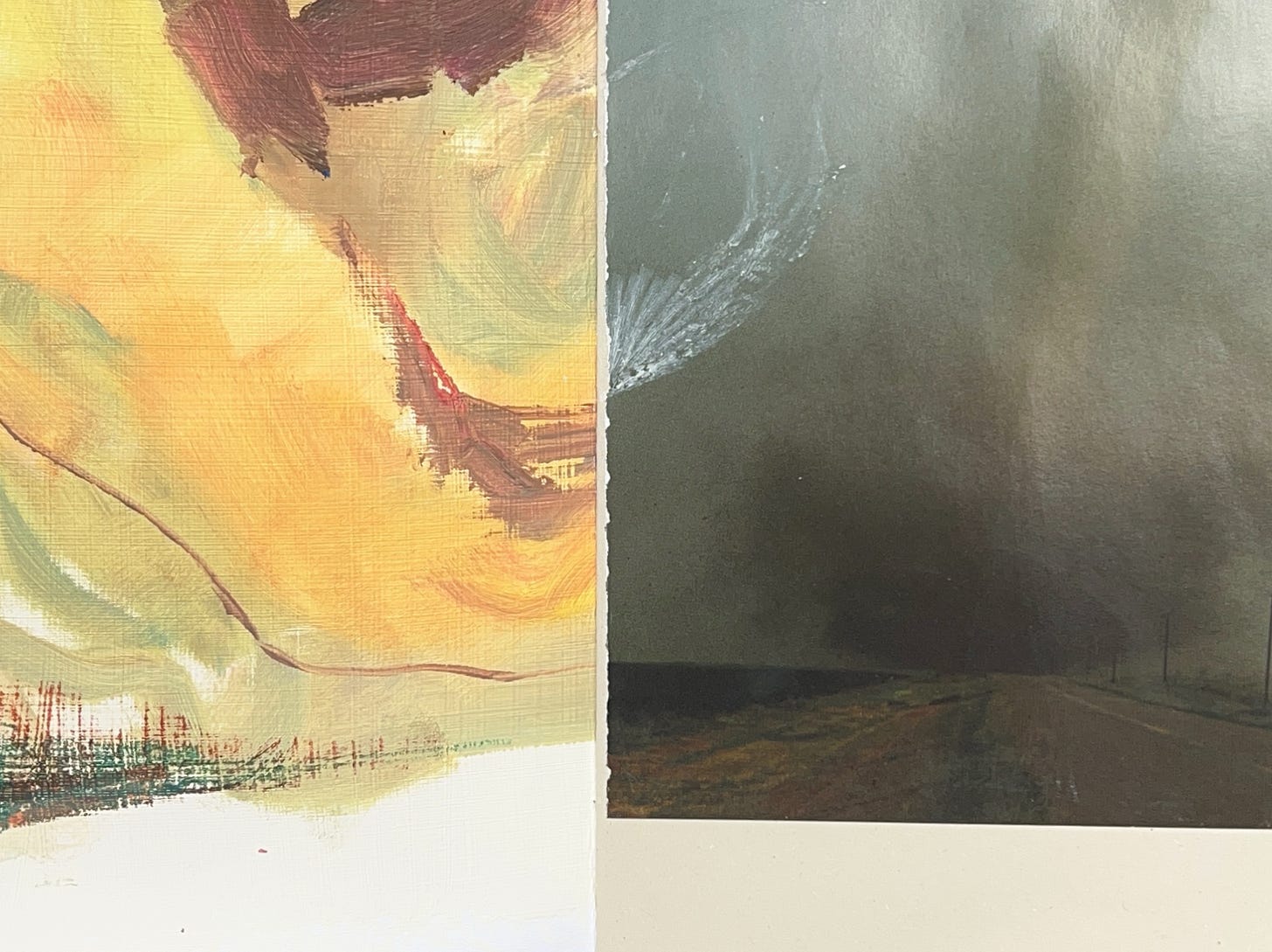 A second horizon in the fold of the white cartridge paper.